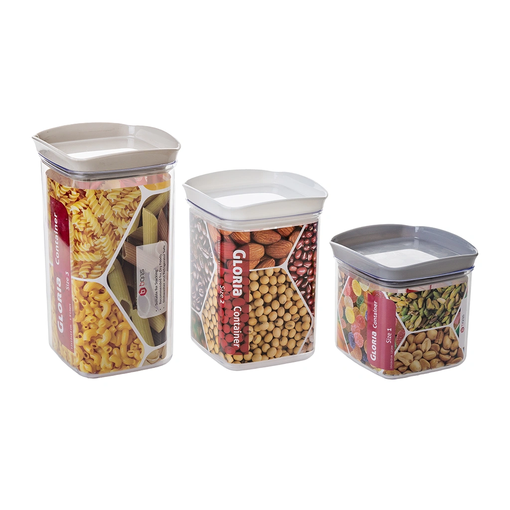 این ست ظرف حبوبات سه عددی بانیس مدل گلوریا از پلاستیک مقاوم ساخته شده و برای نگهداری انواع مواد غذایی مثل حبوبات، خشکبار، میوه و سبزی بسیار کاربردی است. طراحی درب محکم و بدنه شفاف باعث استفاده راحت و نظم بهتر در آشپزخانه می شود.