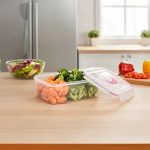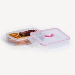 چهار قفل ایمن در اطراف درب و واشر سیلیکونی ضد نشت باعث میشوند هیچ مایع یا بویی از ظرف خارج نشود. بدنه شفاف آن نیز مشاهده آسان محتوا را ممکن میکند.
